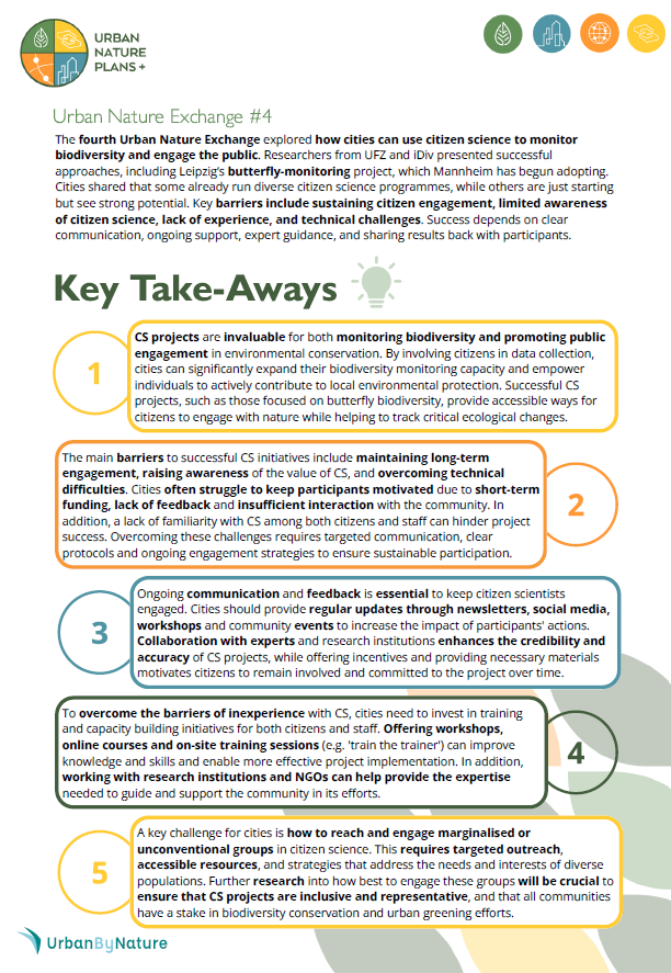 How can cities successfully implement Citizen Science projects for biodiversity monitoring and public engagement? Key insights from the Urban Nature Exchange #4